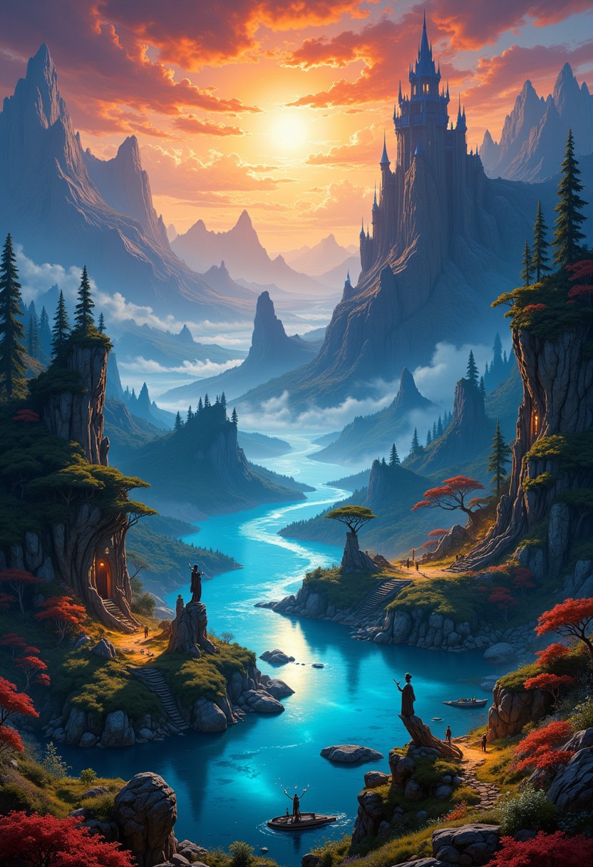 hyper realistic and highly detailed, highly dynamic cinematic panorama view, the lake of serenity, a classic gothic baroque fantasy art painting with vibrant colors, digital artwork, illustrative, painterly, matte painting, highly detailed, atmospheric haze, panoramic zoomed out view, highly dramatic lighting <lora:artilands:0.8>