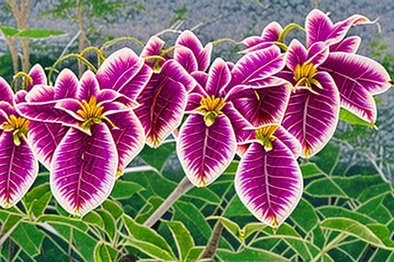 photorealistic, absurdres, nature photo of variegated gongbihua flowers on the back terrace of a country mansion, basking in the warmth of late afternoon spring sunlight
