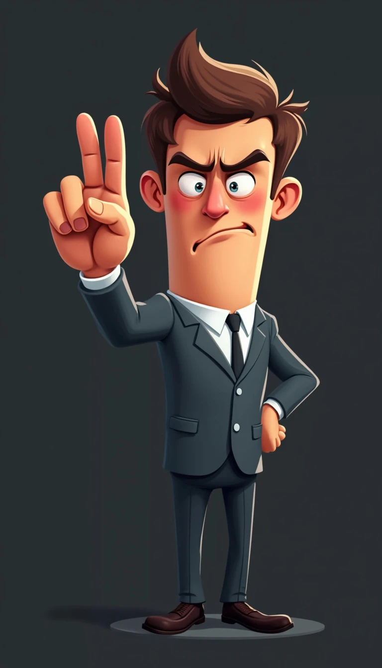 "Create a 2D vector illustration of an office character standing with a serious facial expression and holding up one hand in a ‘no’ gesture, with the palm facing outward. The character is dressed in formal office attire, such as a business suit or button-up shirt and tie. The expression should be clear, showing disapproval or refusal, with furrowed brows and a firm mouth. The background is solid black, making the character stand out in contrast. The art style should be modern and minimalism, with clean lines and soft colors for the character."