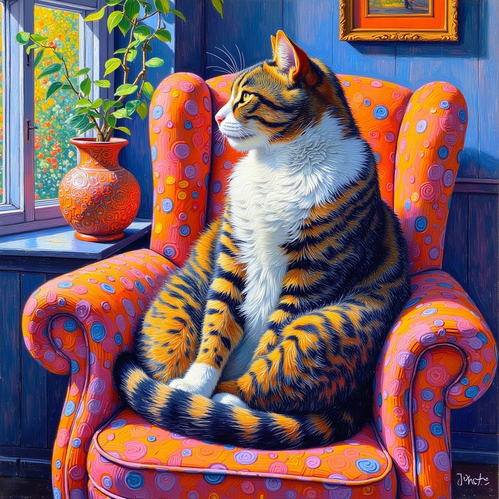 style of Paul Signac,cat,indoor,sofa