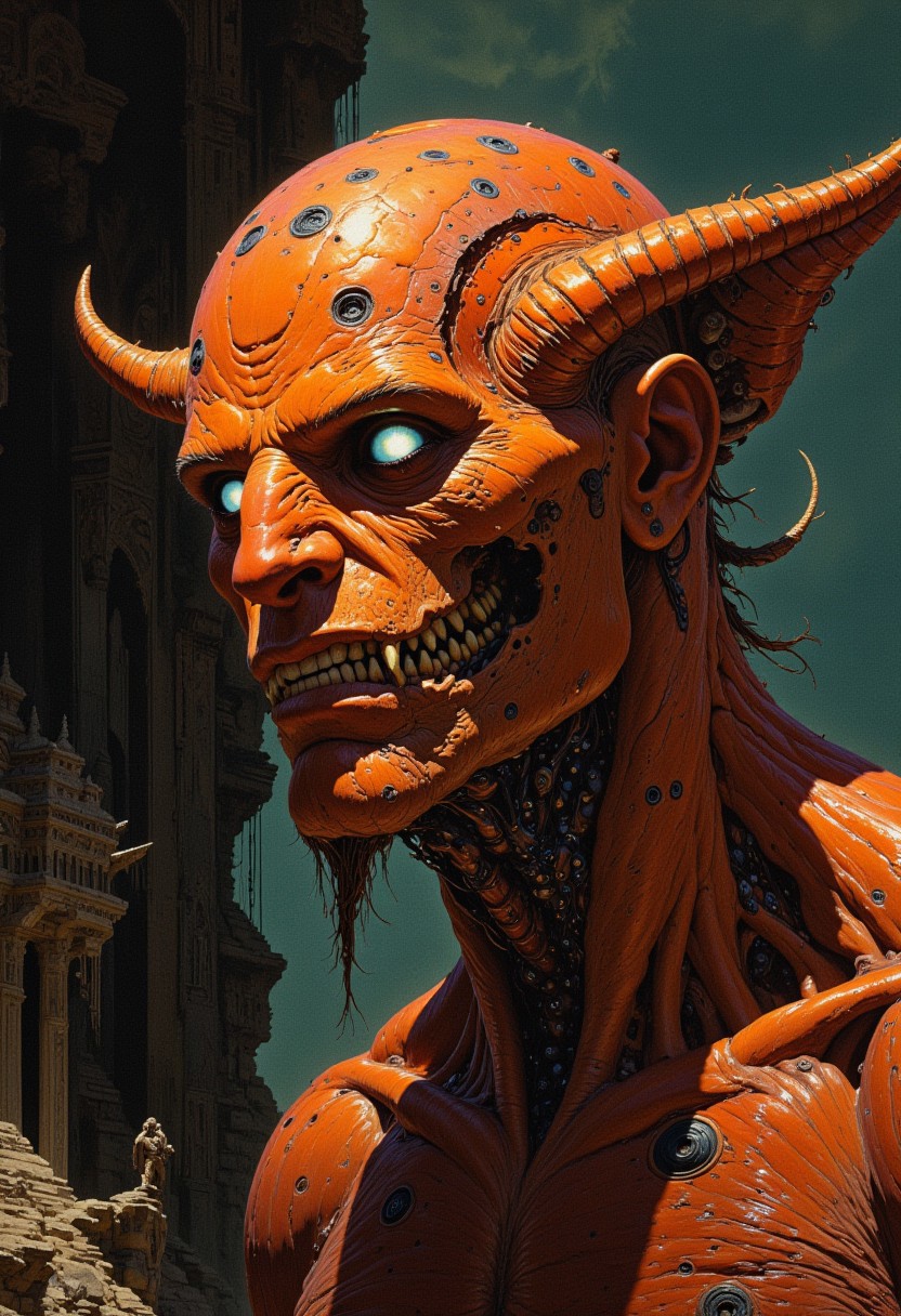 style of Ted Nasmith, score_9, score_8_up, score_8_up, ng_deepnegative_v1_75t, photo, realistic, Oil painting, by Jean-Franois Millet, by Gustave Courbet, by Jules Breton, traditional media, oil painting, famous artwork by (karl kopinski:1.2), fantasy style, tall creepy carrot man monster, lascivious smile realistic, dark fantasy, masterpiece, highly detailed, ever quest, old school rpg, , masterpiece,