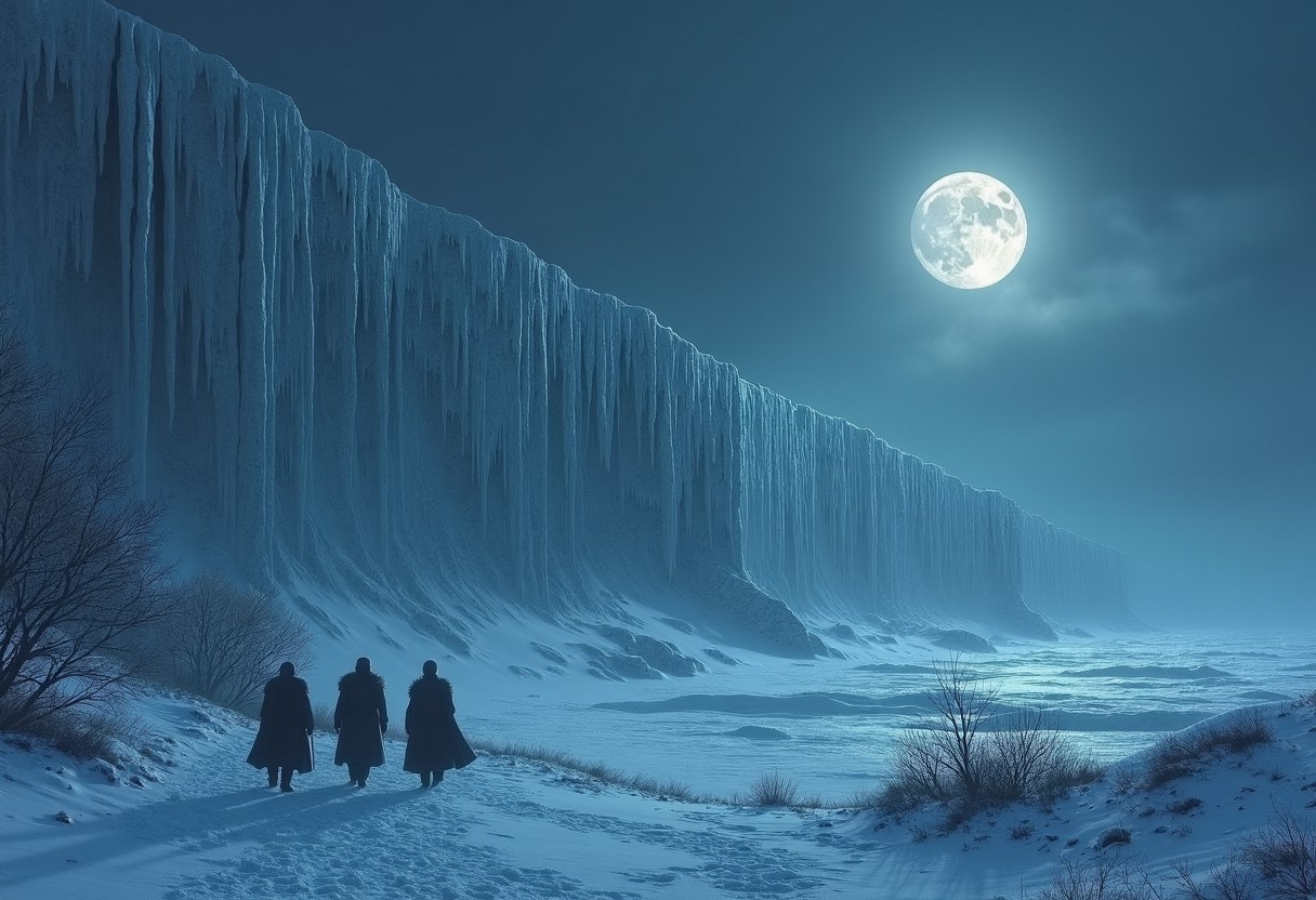 The Wall loomed before them, glimmering pale blue in the light of the half-moon. It was three hundred miles long and seven hundred feet high, a vast curtain of ice that rang with the cold in the darkness. The greatest structure ever built by the hands of men, it was taller than the highest tower, thicker than a castle wall, and so ancient it had been forgotten by most of the world. Built to defend the realm from the Others, it was all that separated the Seven Kingdoms from the terrors of the far north.
