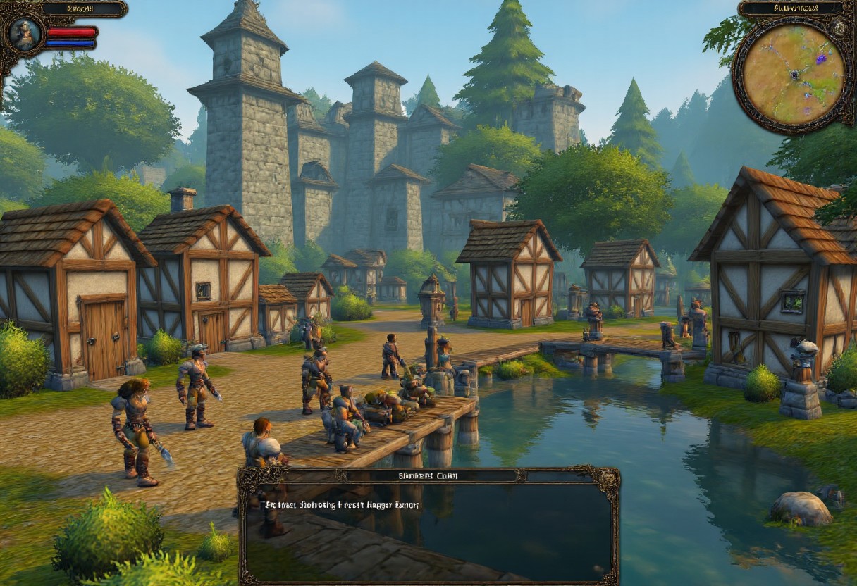 a world of warcraft screenshot, with user interface visible. Stormwind city castle and stone city grounds, on a spring day at noon. Lots of people walking around and merchants selling their wares. people fishing in the canals with bums drunk and telling stories while sitting on the pier. the walls of the city are stone and with wood doors. The city is alive with culture and festivities, with young and old people alike. The chat text box in the bottom center reads with text:"SERVER: Rebooting in 5 minutes, to reset Hogger script", the character name at the top left reads with text:"Tigole", the right top of the image reads with text:"Stormwind city". The minimap at the top right is a 2D overhead view of the area depicted in the 3d portion of the image.