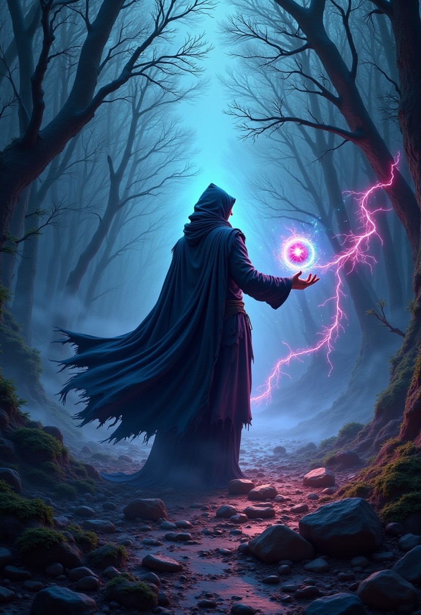 In a mystical realm of eerie beauty, a mysterious wizard stands at the forefront of an epic scenery, his long, dark cloak billowing behind him as he weaves a spell of crystalline transformation, his magical abilities causing the surrounding environment to slowly turn to glass, with trees, rocks, and even the mist-shrouded air itself taking on a delicate, transparent sheen, his eyes aglow with an otherworldly energy, inspired by the dark fantasy of Blizzard's Diablo and the intricate, mystical detail of artists like Simon Stalenhag, Zoltan Boros, and Loish, with a mix of dark, muted colors and vibrant, ethereal lighting, combining the eerie atmosphere of a mystical, ancient world with the sense of foreboding and awe-inspiring wonder of a fantasy RPG.