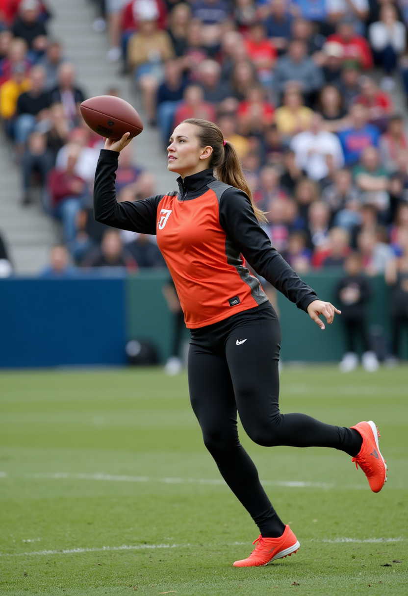 a woman throwing an American Football