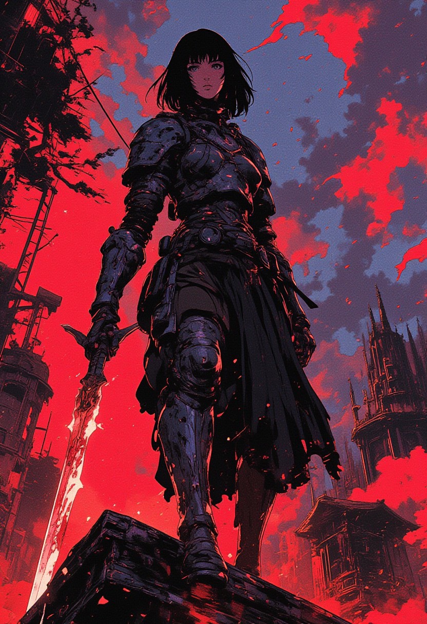 fantasy stylised illustration, anime style, cinematic composition, stunning, full body shot, masterpiece,best quality, close up dynamic model pose, (tall), perfect composition, 1girl, very pretty, attractive, (a surprise attack from above, a deadly assassin drops from hiding attacking with a deadly blade, she wears sleek inconspicuous fantasy assassin gear, she is sexy and attractive), emotional, intense, dark, gritty, heavily stylised, incredible, awe-inspiring, adventurer, short black raven straight hair, bangs, monster hunter style armor