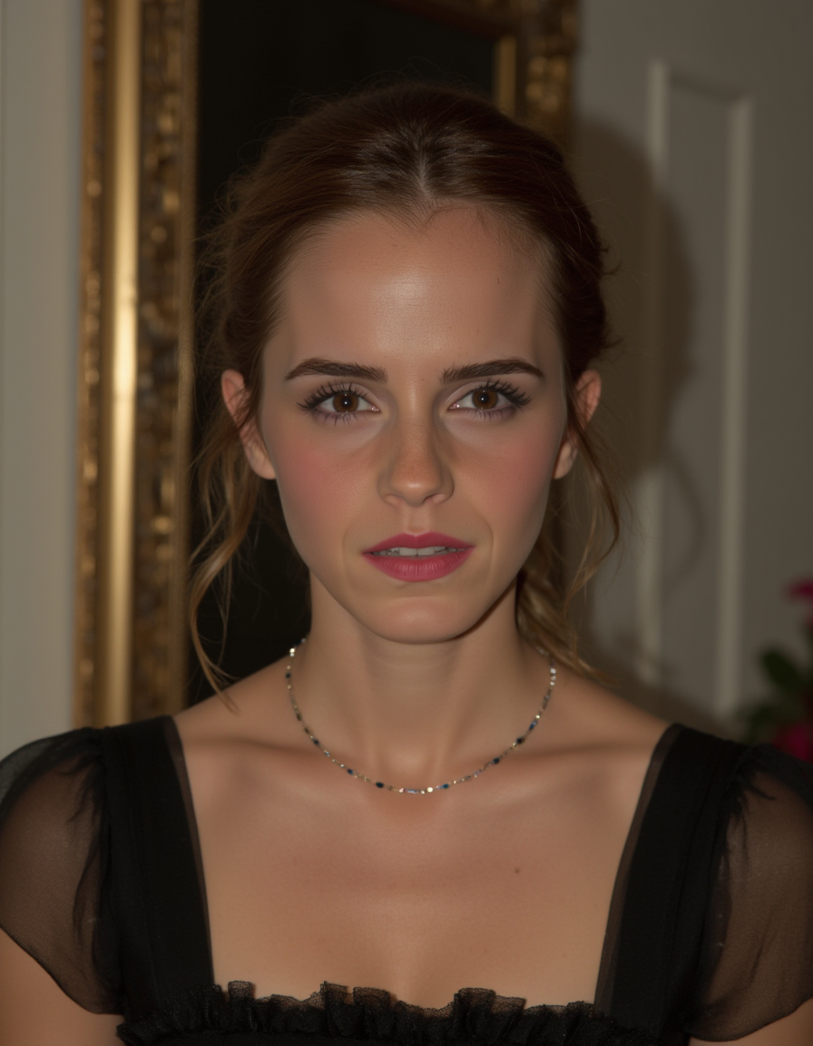 Emma watson 25 years old, wearing elegant outfit, modest, looking at camera, full body in frame <lora:flux_emma_watson:1> <lora:flux_realism_lora:0.8>
