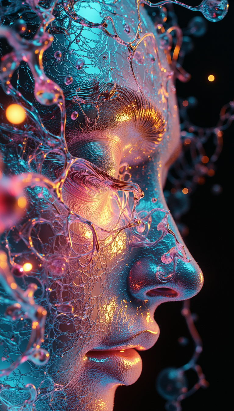 The Mnemonic Mosaic: Envision a living, breathing stained glass window that captures and displays memories. The window should be composed of countless tiny, shimmering tiles, each containing a fragment of a memory. As light passes through, it projects these memories into the air as vivid, interactive holograms. The overall pattern of the mosaic should constantly shift, forming new images and stories as memories connect and associate. Include a frame made of a neuron-like network that pulses with electrical impulses, strengthening connections between related memories. The glass tiles themselves could be in a constant state of fluidity, merging and dividing like cells. Add a control panel that allows users to focus on specific memories, causing those tiles to expand and take center stage in the mosaic. The entire window should emit a soft, phosphorescent glow, with particularly strong or emotional memories shining brighter than others.