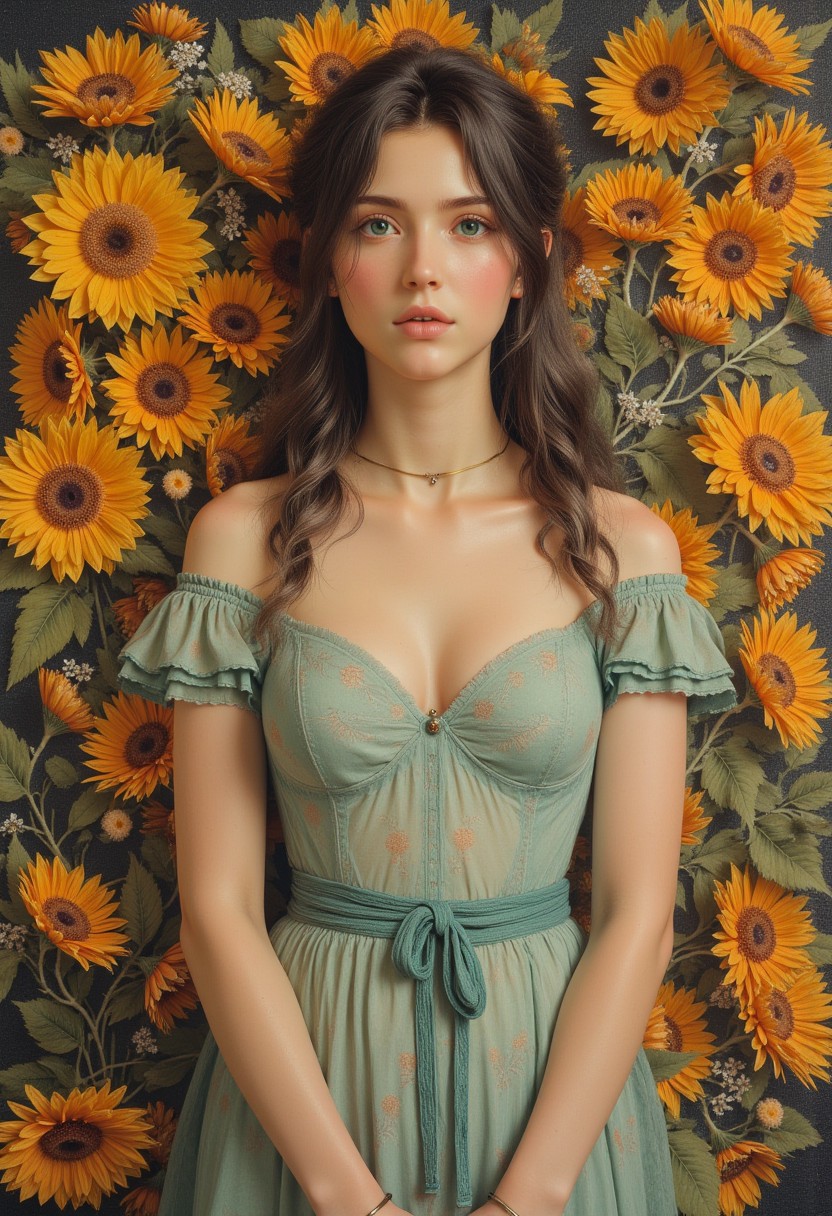detailed photorealistic image,aer1th, adult (Aerith Gainsborough in flowing dress), big breasts, (oil painting) , (Art Nouveau), (by Gustav Klimt), (by Egon Schiele), (by Oskar Kokoschka), (by Alphonse Mucha), (watercolor), close-up, (oil painting), in (ukiyo-e art style:0.3), (by Edgar Degas:1.1), (by Pierre-Auguste Renoir:0.7), (by Claude Monet), (by Vincent Van Gough:1.2), (by J M W Turner:1.2) , directional lighting, masterpiece, perfect composition, perfect hands <lora:ARTifacts:0.8>
