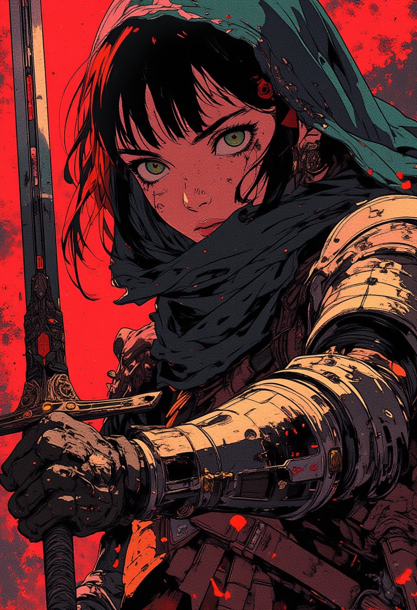 fantasy stylised illustration, anime style, cinematic composition, stunning, full body shot, masterpiece,best quality, close up dynamic model pose, (tall), perfect composition, 1girl, very pretty, attractive, (a surprise attack from above, a deadly assassin drops from hiding attacking with a deadly blade, she wears sleek inconspicuous fantasy assassin gear, she is sexy and attractive), emotional, intense, dark, gritty, heavily stylised, incredible, awe-inspiring, adventurer, short black raven straight hair, bangs, monster hunter style armor, redhead, ginger, piercing green eyes, tired, freckles, nerdy, wavy red hair,