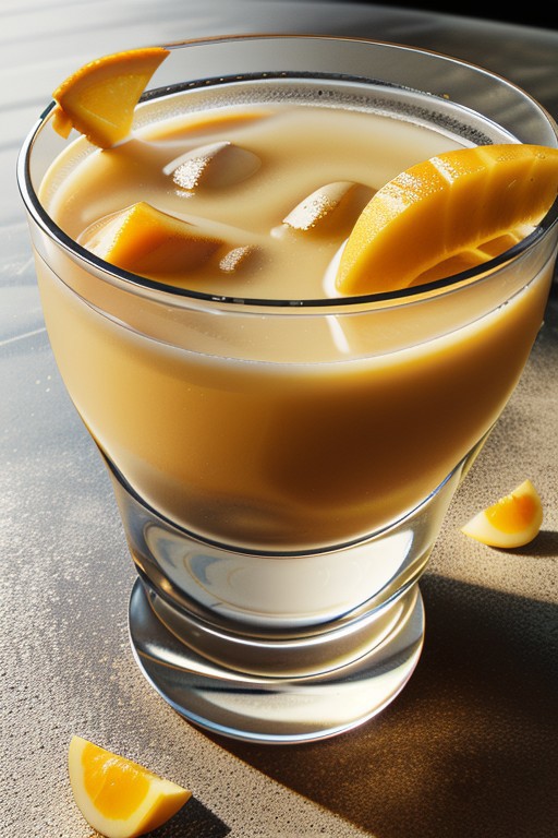 A realistic, high-definition photograph for an advertisement featuring a perfectly ripened, pure yellow mango sliced into a quarter of the whole. The exposed half-cut mango is intricately cut into a maze-like pattern, revealing its juicy, vibrant flesh. The mango rests on a bed of lush green mango leaves, completely covering the ground beneath, creating a rich natural backdrop. Nearby, a crystal-clear glass filled halfway with thick mango pulp juice adds a refreshing element to the scene. The clean glass reflects light, emphasizing the rich texture and color of the mango juice. The composition feels fresh and inviting, with no humans or text, allowing the mango and juice to be the focal points in this tropical, natural setting. (OverallDetail, Photograph)