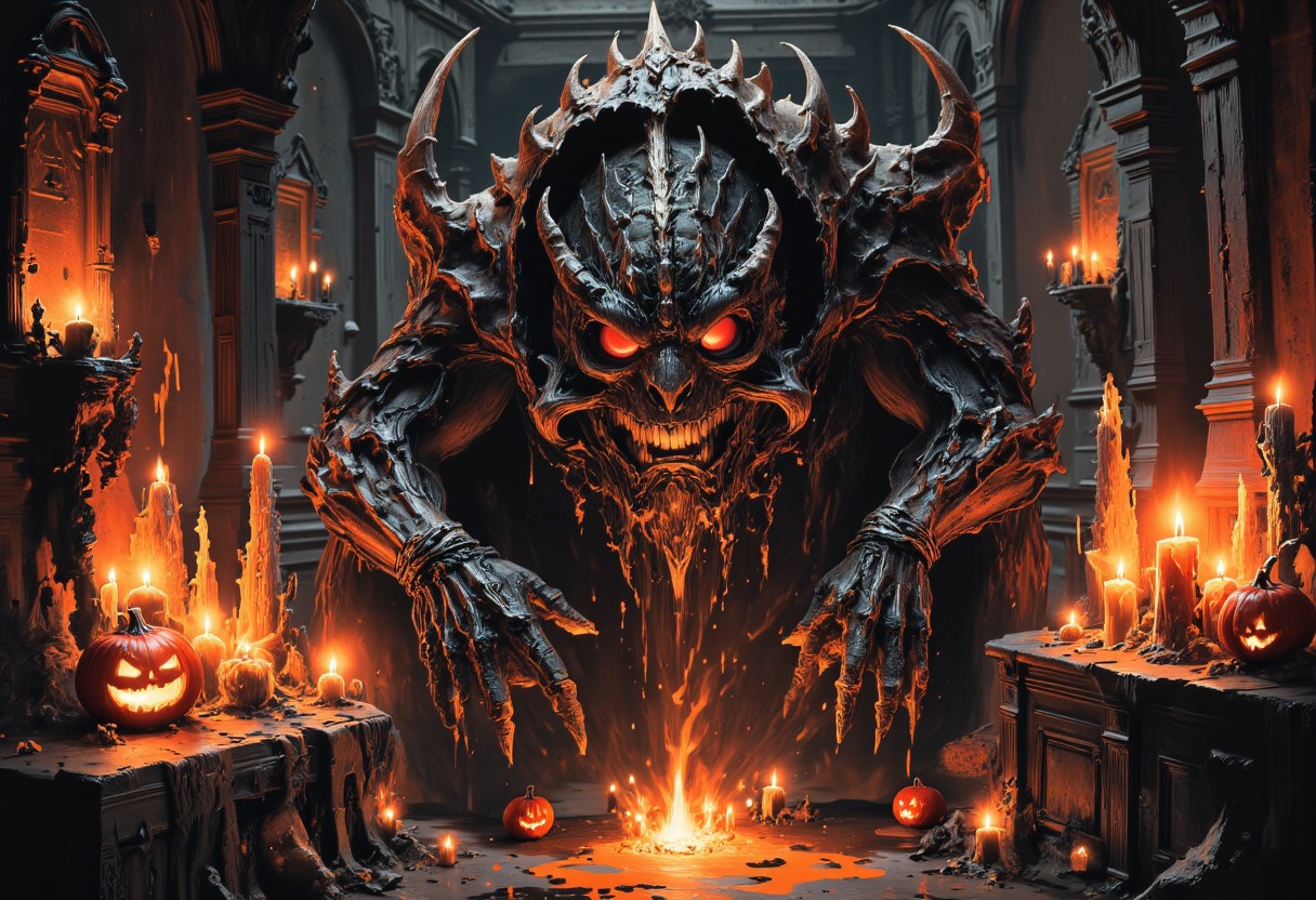 scalie, ((scalie anthro:1.2)), wide angle, muscular, anthro, beard, in the crypt, smiling with teeth, <lora:syurof-16:1.2>, pov, wide view, carved pumpkin in hands, facial hair, looking_at_viewer, dark scales, ((Bara:1.2)), slight shock, indoors at night, outline, face focus, Wet muzzle, big amount of candles, perfect eyes, Long muzzle, wet nose, resting on pov, amazed and excited, raised eyebrows, face focus, monster man,