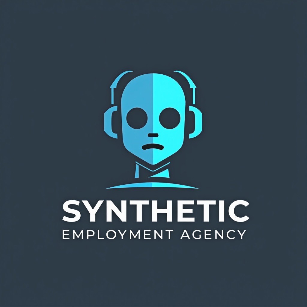 clean, modern logo with stylized robot head and a company name below: "SYNTHETIC EMPLOYMENT AGENCY"