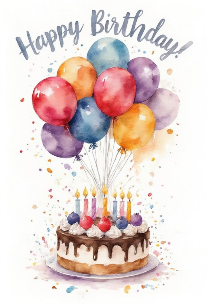 watercolor, wet on wet, paintstreaks, watercolor painting, HAPPY BIRTHDAY! May all your good wishes come true! :), cake, candles, balloons,