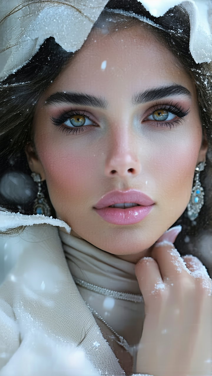 **Style: Surrealism, Portrait** of a sexy woman, artful close-up portrait with heavenly beauty, stylish aesthetics, intricate details, soft light, ethereal quality, rich colors, flowing lines, delicate brushstrokes, dreamlike atmosphere, highly stylized, dramatic lighting, captivating gaze, detailed jewelry, ornate background.