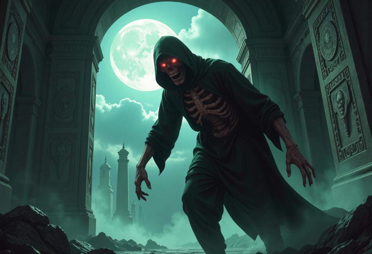 I summon you with blood of an ancient line. Awake now, from your tomb's dark confines! The crypt's chill air you shall embrace, as ghostly form do your bony visage trace. Moonlight shimmering on mausoleum stone your figure illuminates to the bone. Writhing and contorting in twisted paroxysms of fear and anguish undying, You rise up from the charnel pits a wraith unholy, spectral eyes blazing brightly. A guttural screaming rises from your withered throat, as phantasmal fingers claw and rot. Your shrieks of torment pierce the night like knives, ghostly howls that none survive! Unleash the horrors hiding in the tomb where the dead shall rise to haunt you as they come!