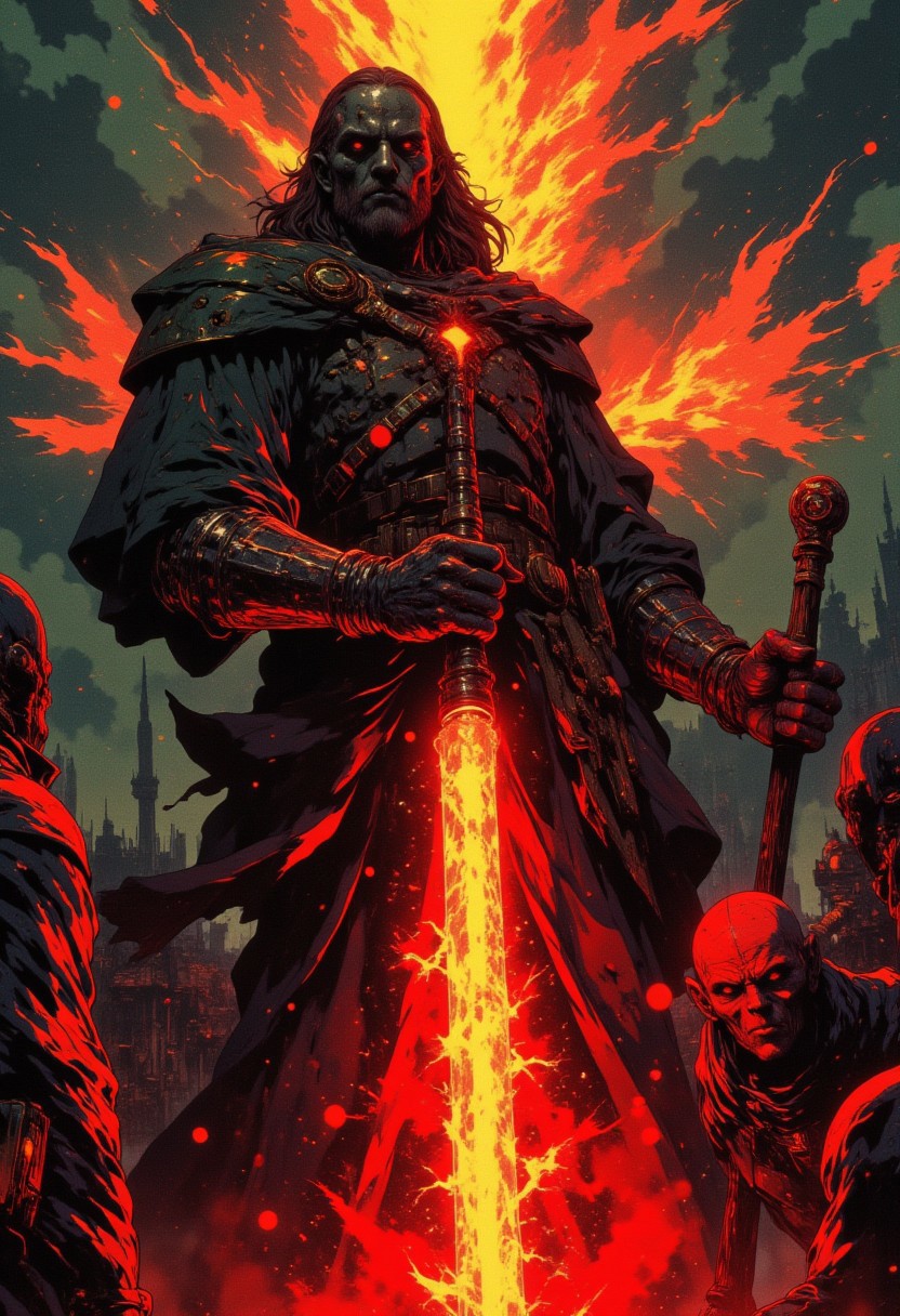 cinematic film still award winning photo, The Lord returns, shallow depth of field, vignette, highly detailed, high budget, bokeh, cinemascope, moody, epic, gorgeous, film grain, grainy,anime, cyberpunk, Comic book style