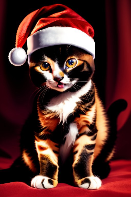 Cute (massive huge eyed), kittens, (wearing Christmas hat), 4k, high detail, high quality, realistic, full body, chibi,