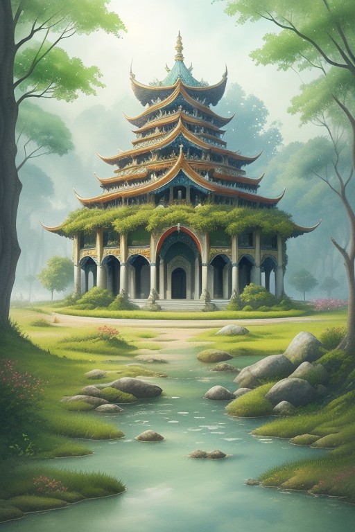 The gorgeous watercolor paintings designed by AI show a palace-level design sense and are pleasing to the eye. The design color is mainly green like a natural forest.