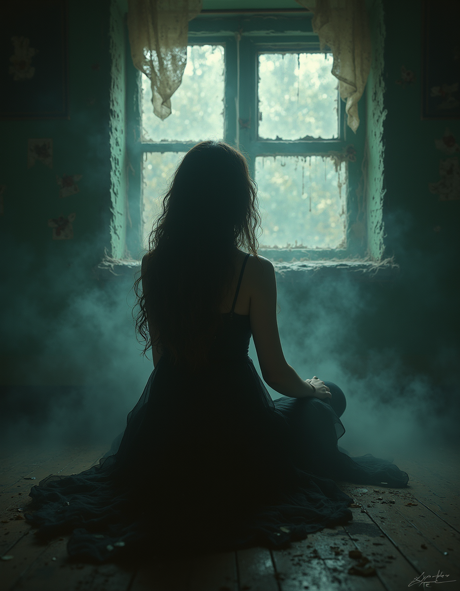 in the style of cksc, dark fantasy aesthetic. , natural colors, , epic. luminescence, ultra realistic, hyper detailed, soft lighting , epic scale. (detailed digital painting, detailed oil painting). Dreamlike scene involving a woman in a state of contemplation. It combines elements of reality and lost memories., perfection,perfect,filmic,retro,vintage,classic,different look,different style,different people, 1970's style , 1970 style, shallow depth of field, vignette, highly detailed, high budget, bokeh, cinemascope, moody, epic, gorgeous, film grain, grainy... masterpiece, best quality, medium-format camera, high-contrast, dramatic lighting, striking composition, The overall composition feels cinematic. mythp0rt, melissamendiny, aidmaimageupgrader