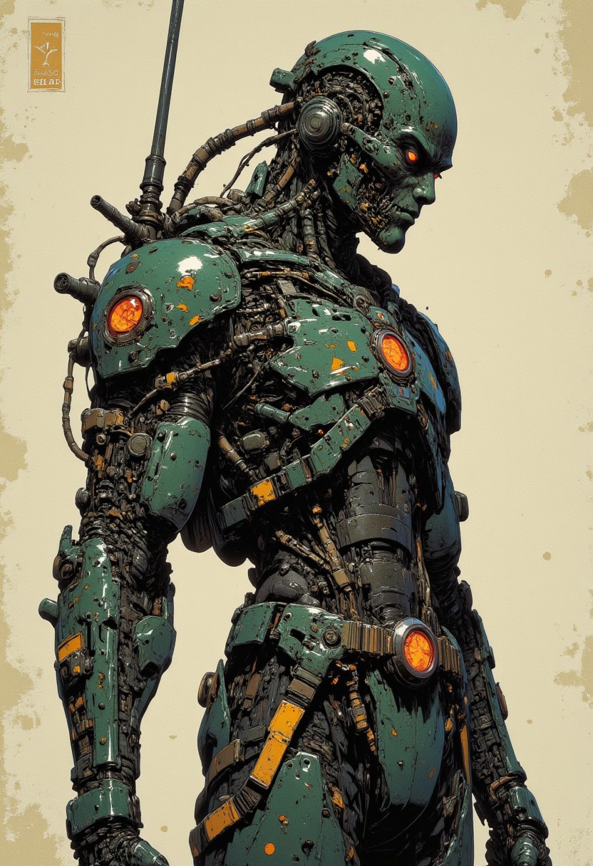 retro anime render of a cyborg in skintight latex,fully metallic body,CAICO