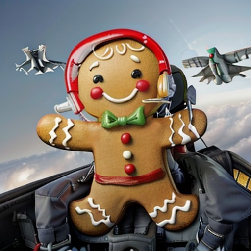 ((masterpiece,best quality)), Gingerbread_Man, ((gingerbread man flying airplane)), house, food, cookie, food focus, no humans, solo, smile, pilot pov, helmet, cockpit, airplane