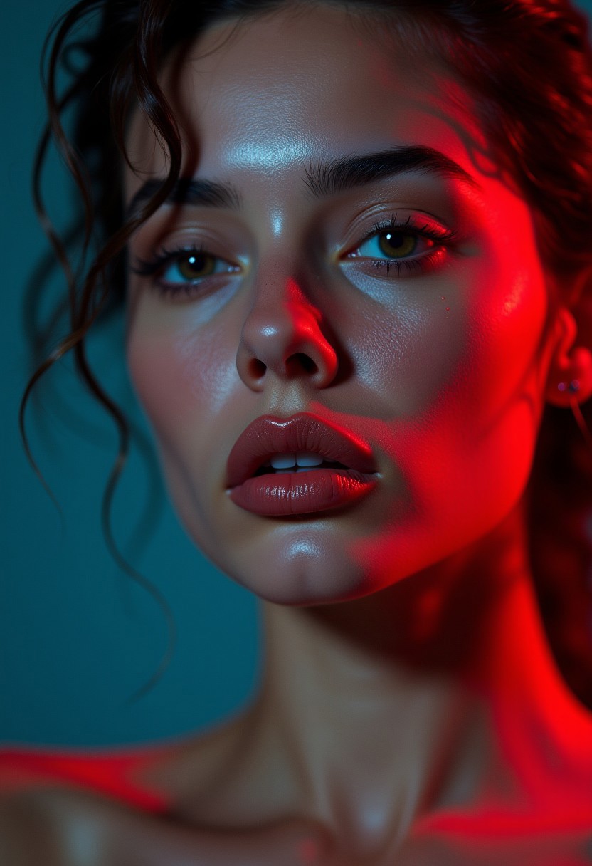 full-high view, modern, high-detailed, colorful, professional photoshoot, vivid color, chiaroscuro lighting, female supermodel with pale skin, high cheekbones