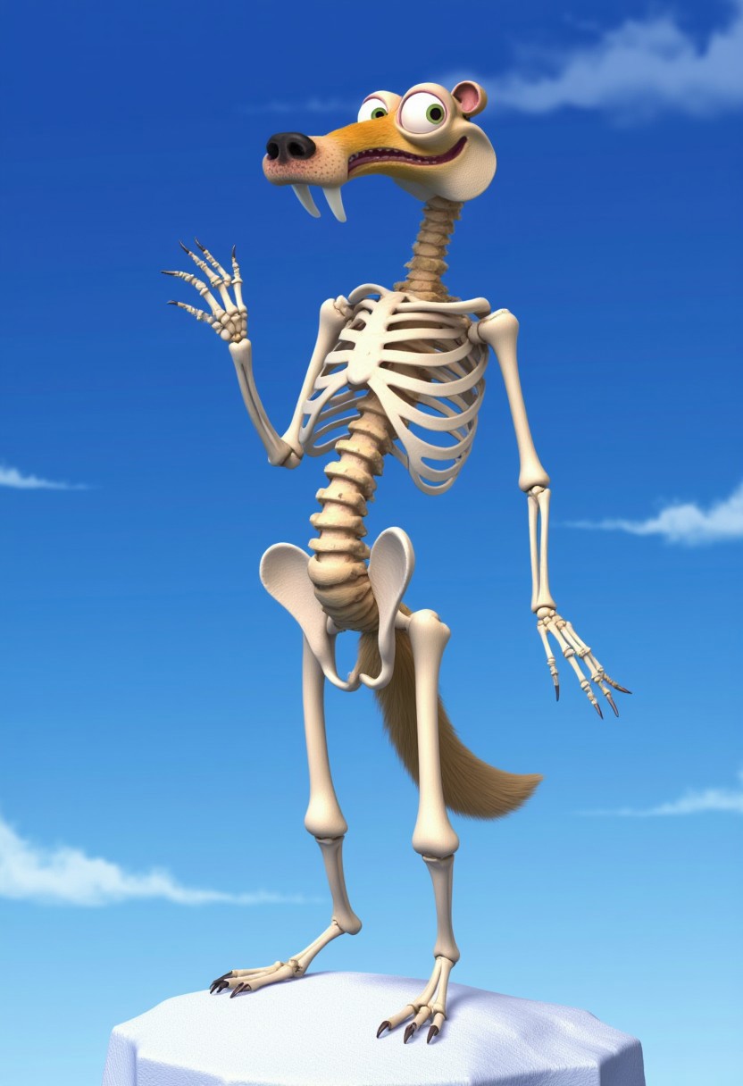 Transparent skeletal specimen of Scrat from the movie Ice Age.