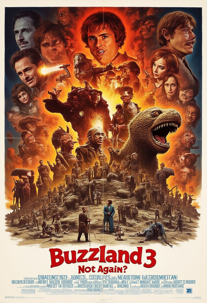 “BUZZLAND 3: NOT AGAIN?!” Hollywood blockbuster movie poster