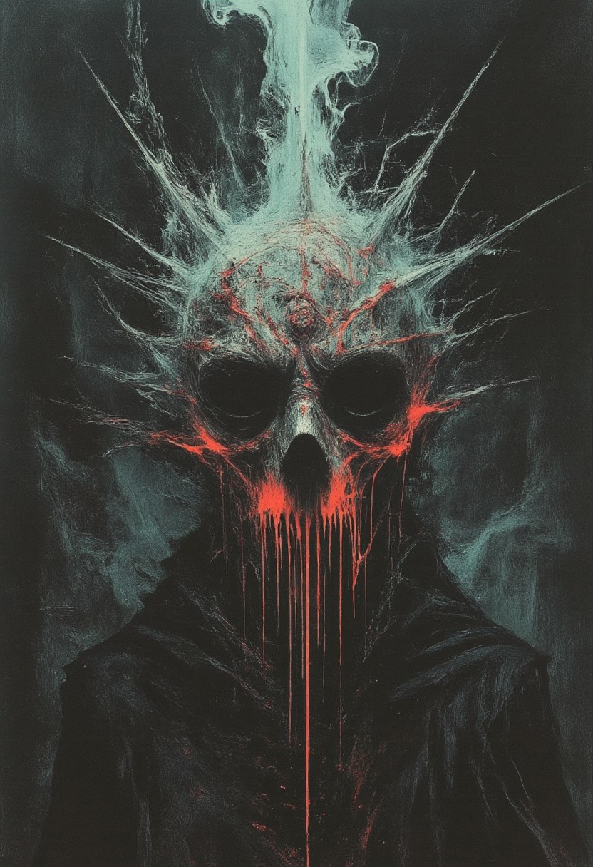 Nothing else matters chaotic,dark fantasy.surreal,smoke,best quality,masterwork, great lighting, perfect shading, atmospheric, sharp focus, high contrast,detailed textures,sharp focus,untamed elements,bold designs,strong silhouette,crimson,electric cyan,stunning color scheme, mesmerizing and otherworldly visual experience, complex, high resolution, artistic, proffesional, composition explores the boundaries of reality, creating a visually arresting scene that defies conventional norms,fractal,weird textures, weird geometry, unusual,