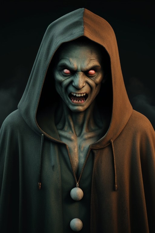 photographic illustration, dark fantasy, high quality, creature with long, pointed ears, sharp teeth, open mouth screaming, grotesque, pale skin, muscular build, hooded cloak, eerie atmosphere, smoky background, dramatic lighting, close-up, side profile, horror theme, detailed textures, wet skin, grim expression, supernatural, haunting, low-key lighting, cinematic feel, moody, intense, unsettling, horror movie still, creature looks like a demon or monster, dark green background, mysterious, unsettling, high contrast, very high aesthetic qualitys.Gingerbread_Man, food, cookie, food focus, no humans