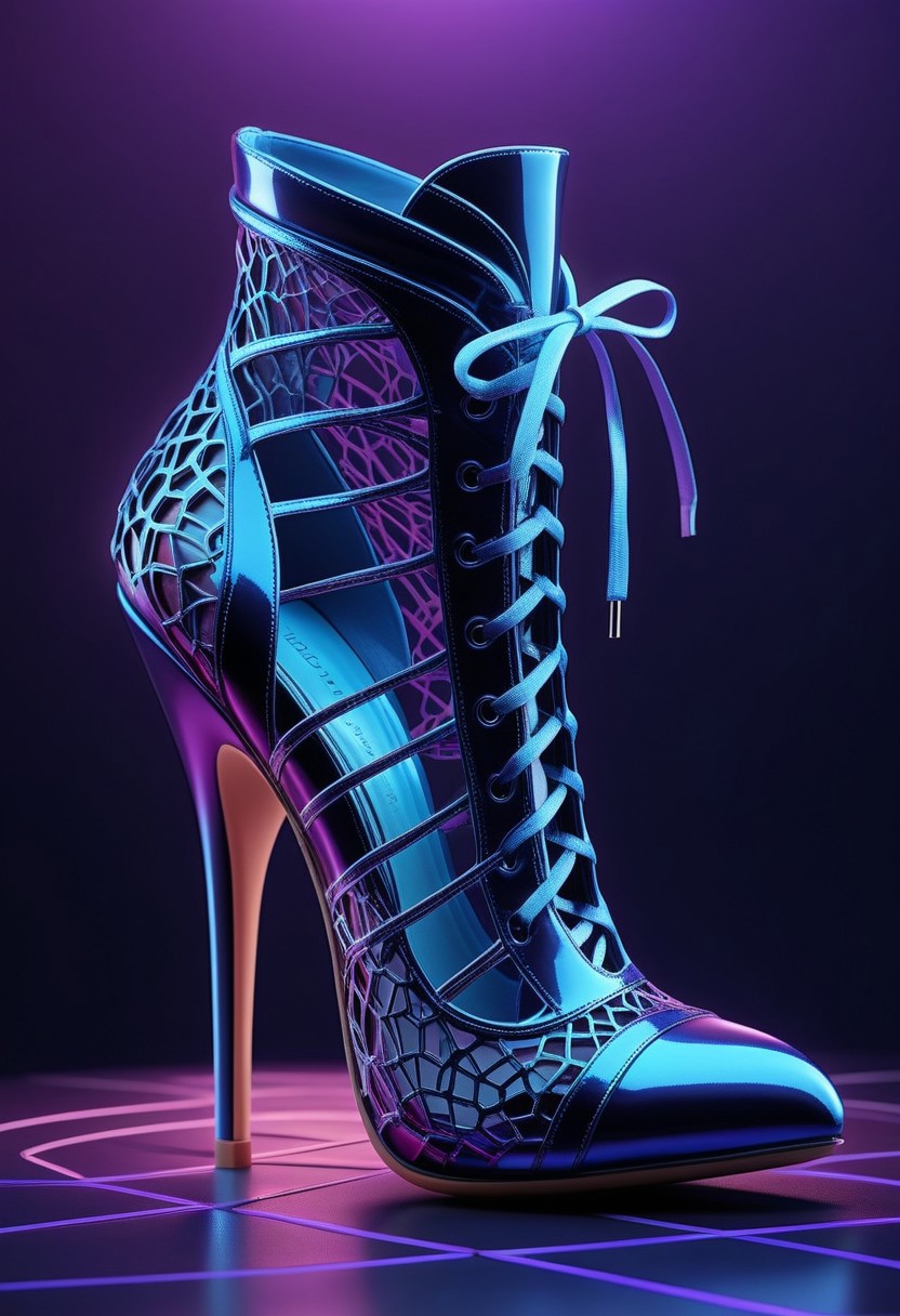 concept art (Ultrarealistic:1.3) <lora:LatexID_-_Ai_Heels:1> a high heeled shoe with a lace up design, stylish shoe design, high heels. silk, high heels, stilettos, heels, wearing open toe heels, silk shoes, in style of ultra high detail, inspired by Manolo Millares, in style of 3d render, whole shoe is in picture, high heels. anime style at pixiv . digital artwork, illustrative, painterly, matte painting, highly detailed, fragmented digital background, virtual world dissolving into data streams, surreal aesthetic, neon blue and purple lighting, high detail, cinematic composition, cyberpunk dream <lora:Code__Digital_World_Morph_PONY_XL_by_UOC:0.8> codeandigital, . Dreamlike, mysterious, provocative, symbolic, intricate, detailed