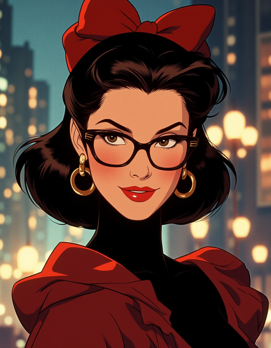 Disney anime, Disney Morph, Disney Style, 2D Animation, Solo focus, minimalism, simple colors, Illustration of a sexy spy from 1970, glasses. lipstick, . Voluminous and deep drawing, restrained colors., masterpiece, best quality, AmandaCerny women