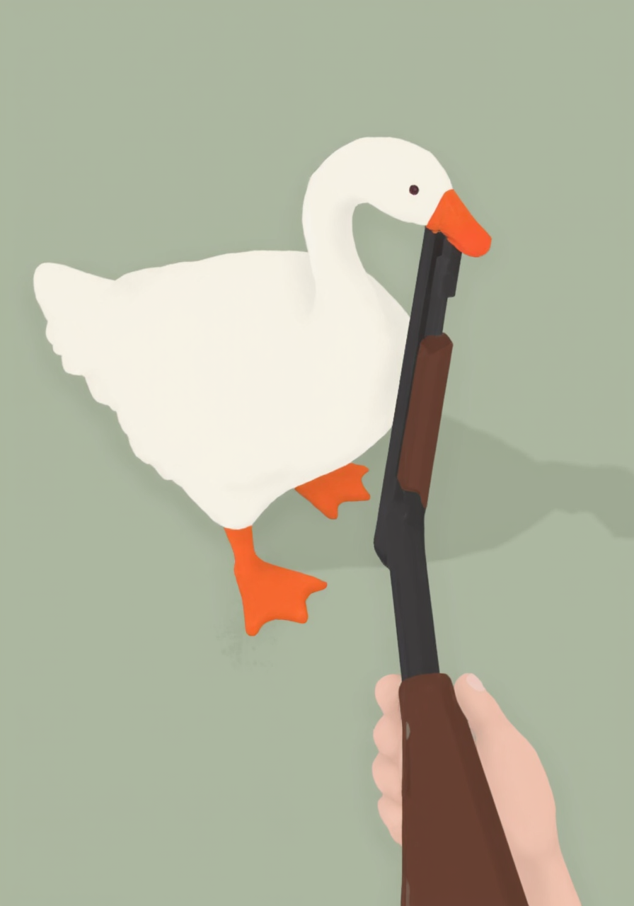 overhead perspective g00se art with smooth textureless style with muted pastel palette of a goose holding a model870 shotgun in its beak,<lora:g00se.safetensors:1.0:1.0> <lora:Model870-18.safetensors:1:1>