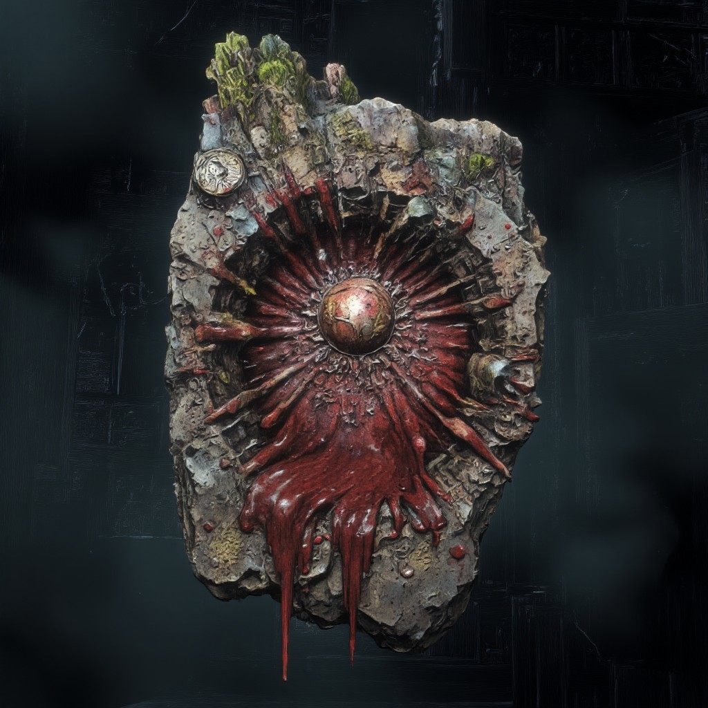 item, rock, A blood stone, crystal mineral icon, bloodborne stone dripping with blood, liquid poring out of the stone cracks