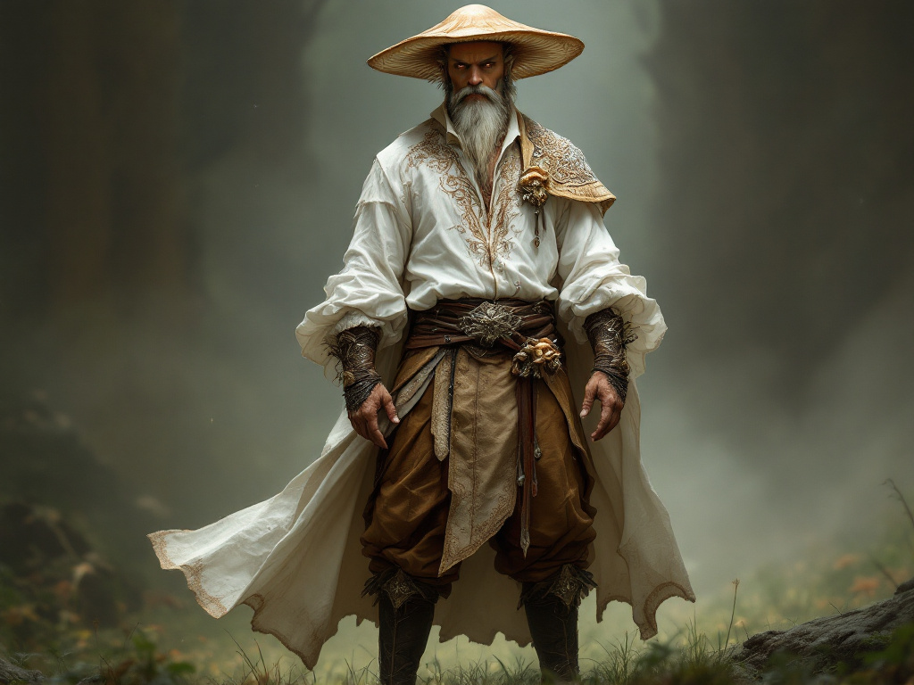 a full body photo shot of a beautiful and breathtaking image of a ((mushroom)) warrior wearing a fully clothed casual clothes with intricate details in the style of a swordsman, he is holding a long bioluminescent curved ((sword)). This full body image is a one of a kind unique highly detailed with 8k sharp focus quality masterpiece