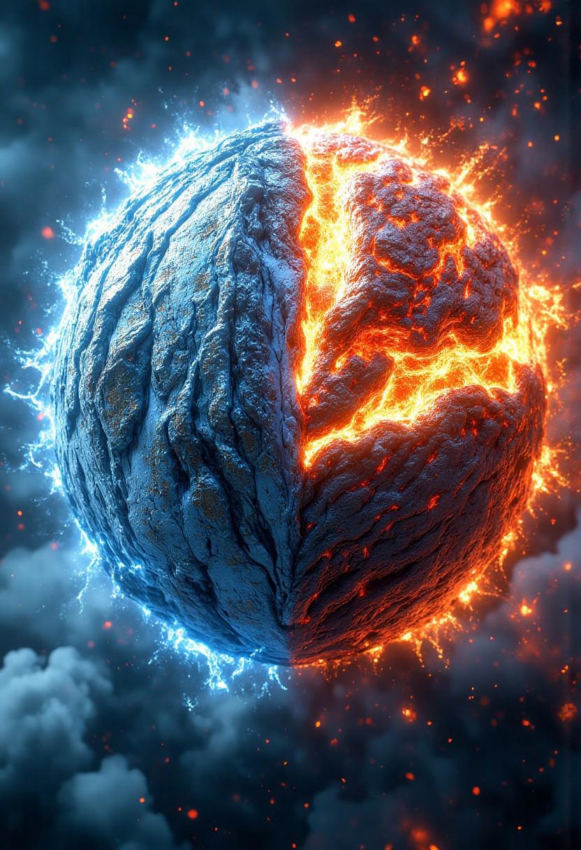 A visually striking thumbnail showing a globe with one half covered in snow and ice, symbolizing winter, and the other half with rising temperatures and melting glaciers. The image includes vibrant visuals of extreme weather conditions like snowstorms, rainfall, and clear skies to represent climate change impacts. A warm and cool color gradient (blue to red) runs across the globe to signify the transition. The background features a subtle overlay of clouds and weather icons to enhance the theme of climate change and winters