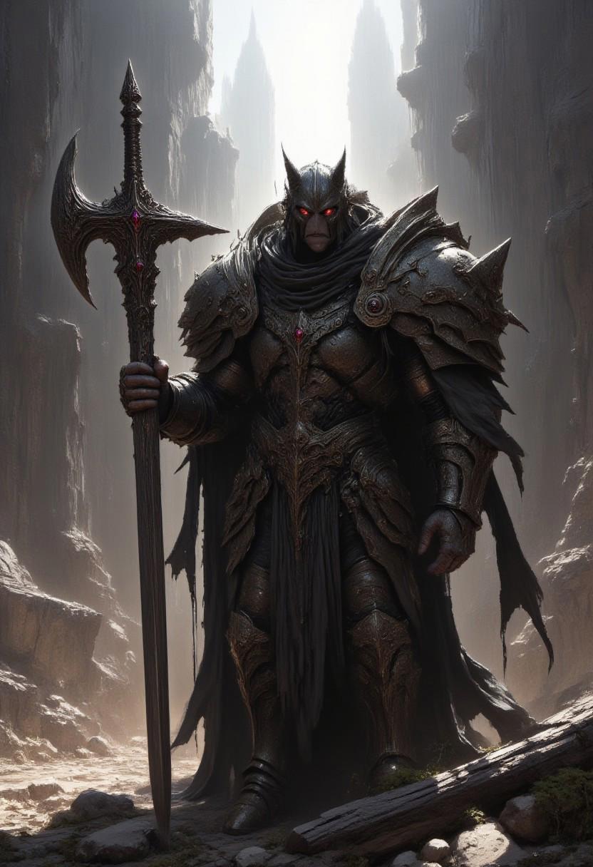 Cat berserker with a huge warhammer,vantablack, hkstyle