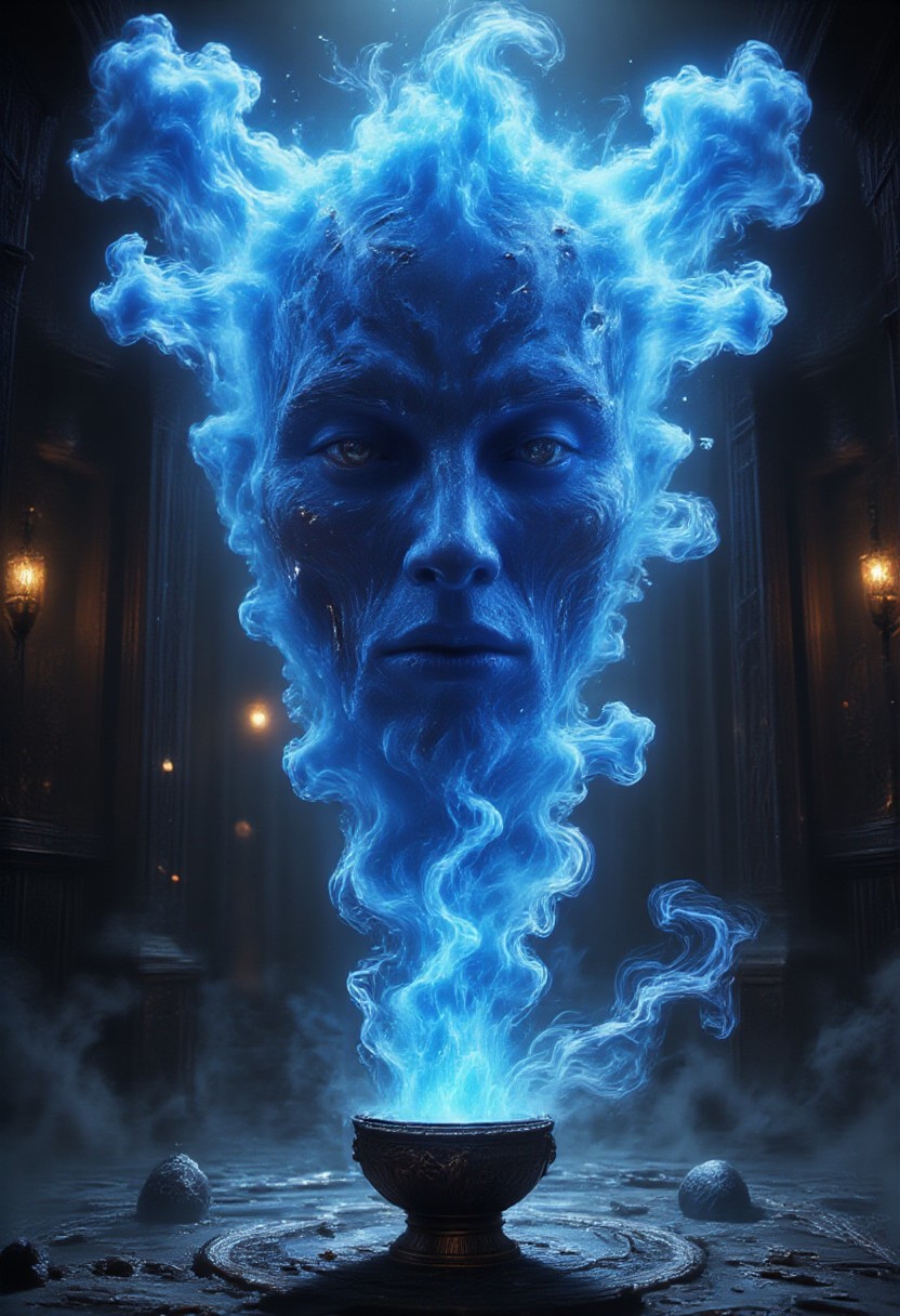 UHD 32k fantasy movie still, photograph, an enormous muscular powerful blue-skinned genie with lower body made of smoke tornado rising out of a small brass magic genie lamp on the ground, glowing eyes, magic aura, ancient Arabian city background, magic aura, detailed and intricate environment, delicate face, elegant, highly detailed, digital painting, artstation, concept art, correct digits, realistic skin, perfect expressive eyes, perfect pupils, surreal, otherworldly, Stunning visuals, Texture, bv-smowormor, thick, smoke, cg, Cinematic style, Beauty, Realism, Photorealism, Chiaroscuro, High quality, auralora