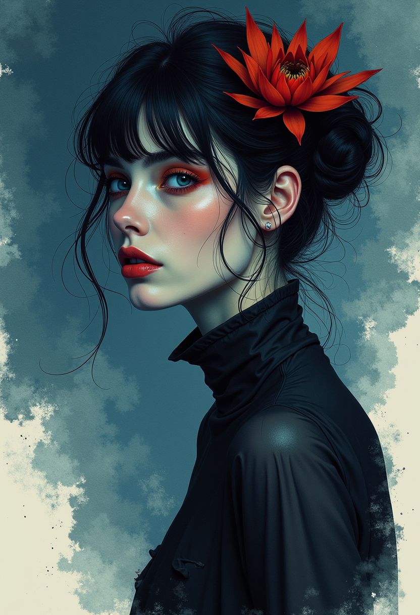 watercolor art by Conrad Roset, Anna Dittmann and John William Waterhouse, -artistmedium-, In the heart of a dark and mysterious night, darkness reveals hidden terrors. The air is thick with ominous silence, and the only sounds are the soft rustling of leaves and distant calls. A sharp focus dominates the scene, , cold colors, in haute couture, imaginative illustrations, elegant compositions, vase painting, in beachwear, Eclectic, large-scale compositions, 2D flat, Canadian landscapes, modernist, experimental process, radiant, luxury, professional creative, great composition, contemporary fine detail, dynamic cinematic color, <lora:models\Flux\donm1nkl0f7fx:0.3>,