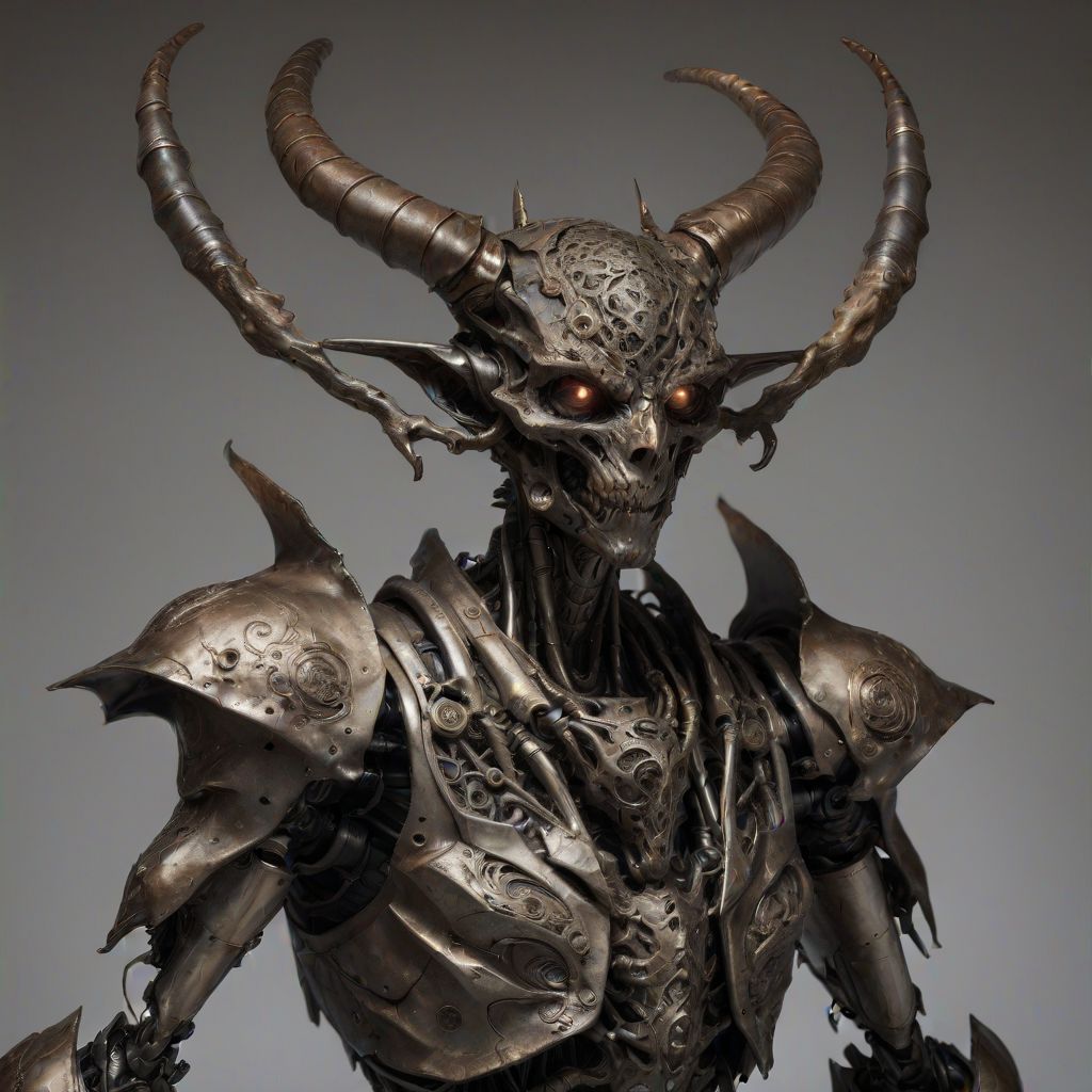 In a dimly lit nursery, a toddler sits surrounded by toys. However, this child is unlike any other. With tiny horns peeking out of its unruly hair, and eyes that glow with an eerie light, there's an undeniable air of mischief and darkness about this little demon. Despite its small stature, there's a sense of power and ancient wisdom that seems to emanate from this pint-sized creature.