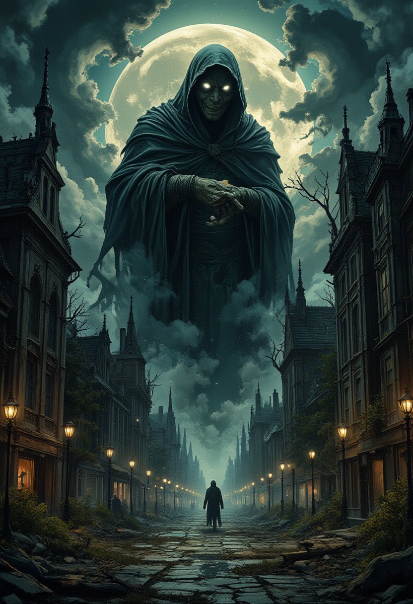horror, monster, nightmare, fear, illustration, watercolor, Color painting, a sense of depth and intrigue, digital brushstrokes, Stunning ink drawing. A captivating 3D render of a dark fantasy scene (((Smiling Evil Smiley Silhouette: 1.5))) where the moon casts an ominous glow and the sky is filled with ominous clouds. (((Smiling Evil Smiley Silhouette: 1.5))) looms large, casting a shadow over an abandoned, derelict city. The city is decorated with a mix of gothic and futuristic architecture, and the overall atmosphere is a mixture of mystery and tension., 3D render, cinematic, illustration, dark fantasy Art by Giovanni Boldini, Bastien Lecouf-Degarme, Karn Griffiths, E. Abramzon, Raphael, Caravaggio, Cobie Whitmore, Titian, Leonardo da Vinci