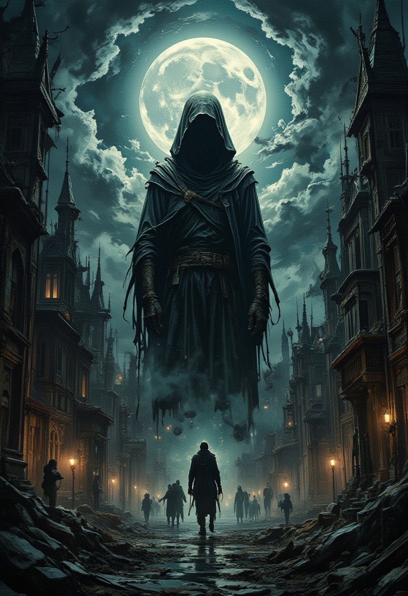 horror, monster, nightmare, fear, illustration, watercolor, Color painting, a sense of depth and intrigue, digital brushstrokes, Stunning ink drawing. A captivating 3D render of a dark fantasy scene (((Smiling Evil Smiley Silhouette: 1.5))) where the moon casts an ominous glow and the sky is filled with ominous clouds. (((Smiling Evil Smiley Silhouette: 1.5))) looms large, casting a shadow over an abandoned, derelict city. The city is decorated with a mix of gothic and futuristic architecture, and the overall atmosphere is a mixture of mystery and tension., 3D render, cinematic, illustration, dark fantasy Art by Giovanni Boldini, Bastien Lecouf-Degarme, Karn Griffiths, E. Abramzon, Raphael, Caravaggio, Cobie Whitmore, Titian, Leonardo da Vinci