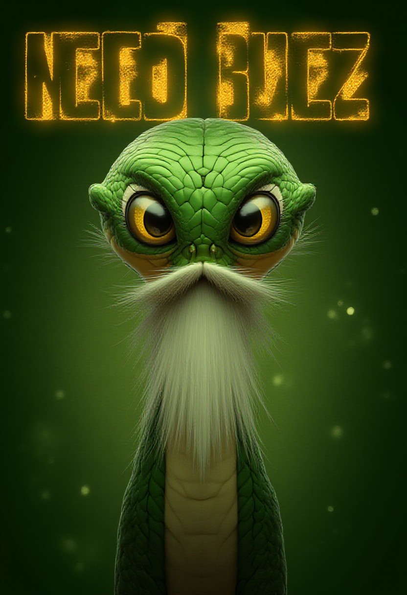 a high quality movie poster with bold lettering and a large snake focused and in frame, in big bold gold letters across the top "Need BUZZ for Retirement" as an old snake with a long white beard and glasses looks tired <lora:flux-cute-snake:1> cute snake, faded green scales, bright shiny yellow eyes, (anime, masterpiece, intricate:1.3), (best quality, hires textures, high detail:1.2), (4k),(incredibly detailed:1.4),UHD, 8K, ultra detailed