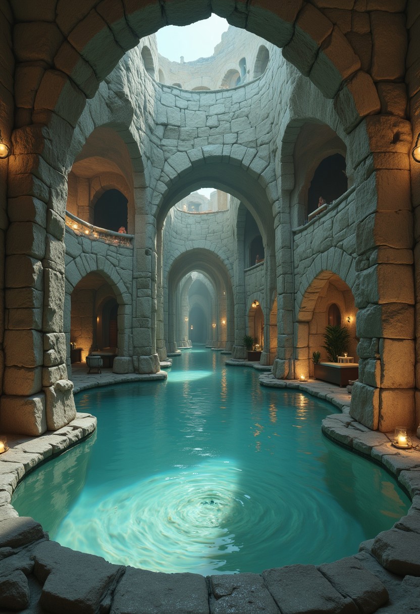 masterpiece, best quality, good quality, very awa, very aesthetic, absurdres, newest, cinematic scene. futuristic interior architecture design, poolcore, stonepunk, dungeoncore, intimate lighting, inviting, calm, serene. Adding depth to the composition, High resolution, high detail. Highly detailed. Wide Shot, Cinematic Lighting, <lora:USNR_STYLE_XL_lokr:0.45>