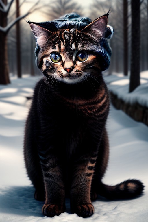 Cute (massive huge eyed), kittens, (wearing beanie hat), winter, 4k, high detail, high quality, realistic, full body,