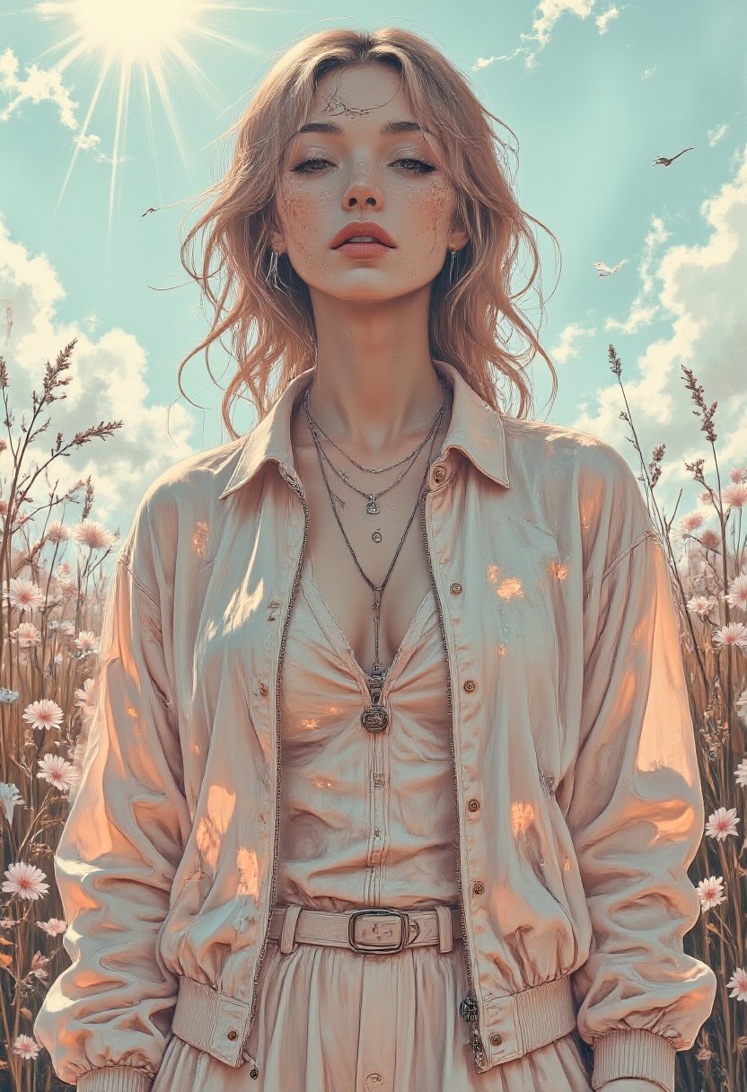 Spring 2026 Pastel Pleather Line: A Dreamlike Lookbook Photoshoot That Never Happened. Capture the essence of a futuristic yet soft spring collection, blending pastel hues—mint, lavender, peach, and butter yellow—with the edgy texture of pleather. Set the scene in an ethereal, sun-drenched meadow with blooming flowers and soft morning light, contrasting with sleek, metallic accents and reflective surfaces. Models should embody a mix of elegance and rebellion, styled with flowing pastel pleather dresses, structured jackets, and avant-garde accessories. Incorporate surreal elements like floating fabrics, holographic details, and dreamy, otherworldly poses. The mood should feel both nostalgic and forward-thinking, as if this collection exists in a parallel universe where spring 2026 is a blend of retro-futurism and high fashion. Use soft focus, vibrant pastel tones, and dynamic compositions to create a visually stunning narrative that feels like a lost chapter of fashion history.