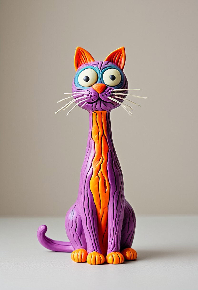 a cat, humorous, he's a clay funny guy, its so cute, bright colors, shiny, for a toddler to laugh at