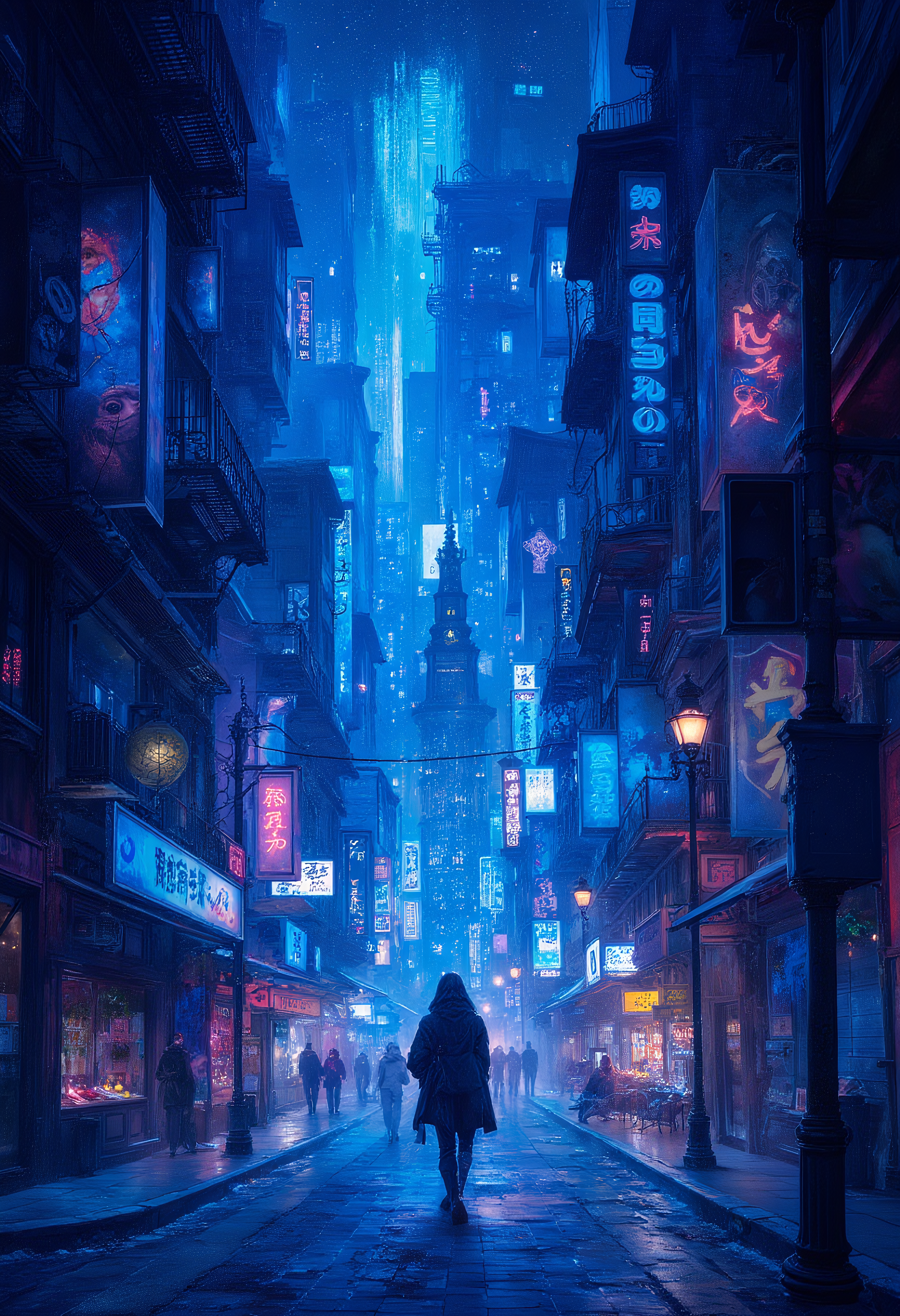 Indigo Blue City, Nightlife, City Lights, vibrant glow