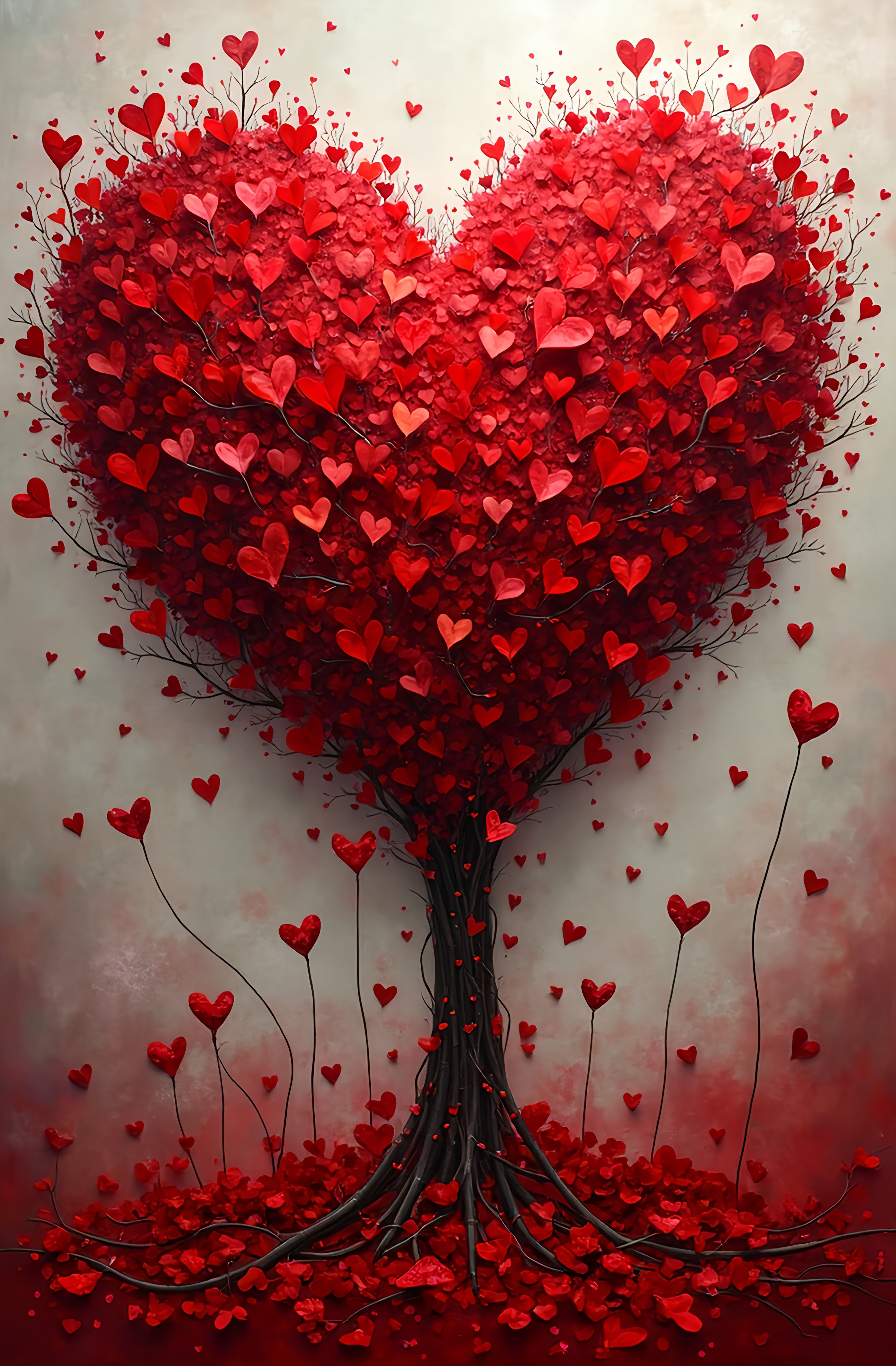 the artwork is a hyper maximalist masterpiece that is both unique and original, featuring a perfect balance of intricate details and bold colors that create a sense of wonder and awe in the viewer. It is a groundbreaking, breathtaking, stunning, epic masterpiece that captures the spirit of Valentine's Day in a way that is both timeless and unforgettable.